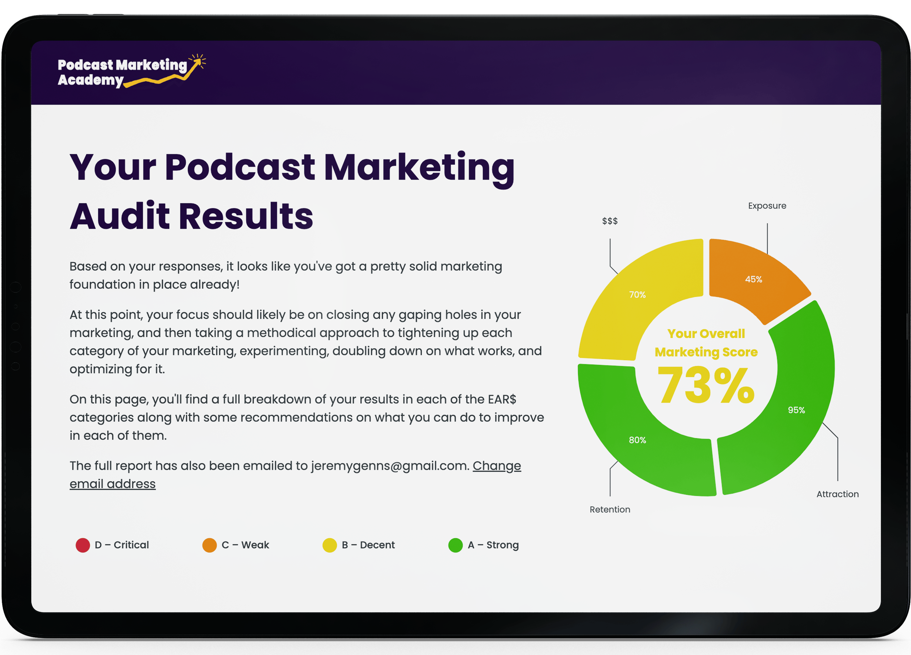 The audit is based on our Podcast Marketing Academy EARS Framework we use to help our students and clients build holistic, highly-effective podcast marketing and growth strategies.